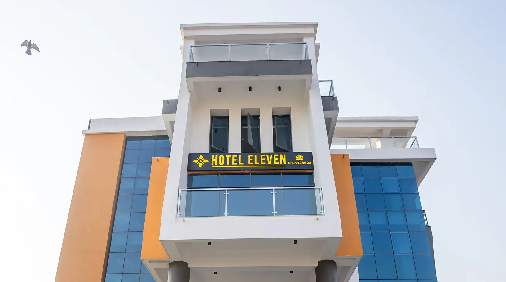 Hotel Eleven is ideally located on Dhumbarahi–Mandikhatar Road, opposite HAMS Hospital and just 150 meters from the Ring Road, with Tribhuvan International Airport, Boudhanath Stupa, Pashupatinath Temple, and Budhanilkantha all within a 15-minute drive.